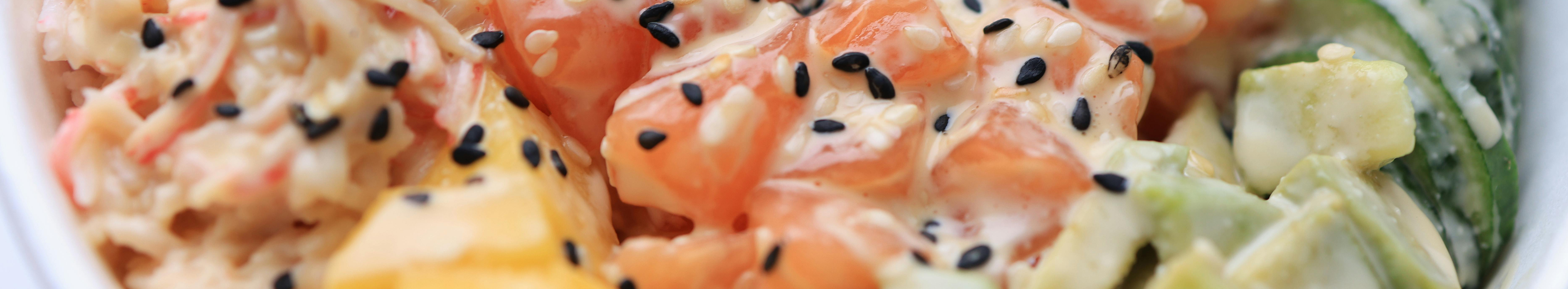 Creamy salmon, citrus-kissed tuna, and crisp tropical greens atop a bed of coconut-lime rice, and finished with mango-chile relish and a splash of rum-spiced ponzu.